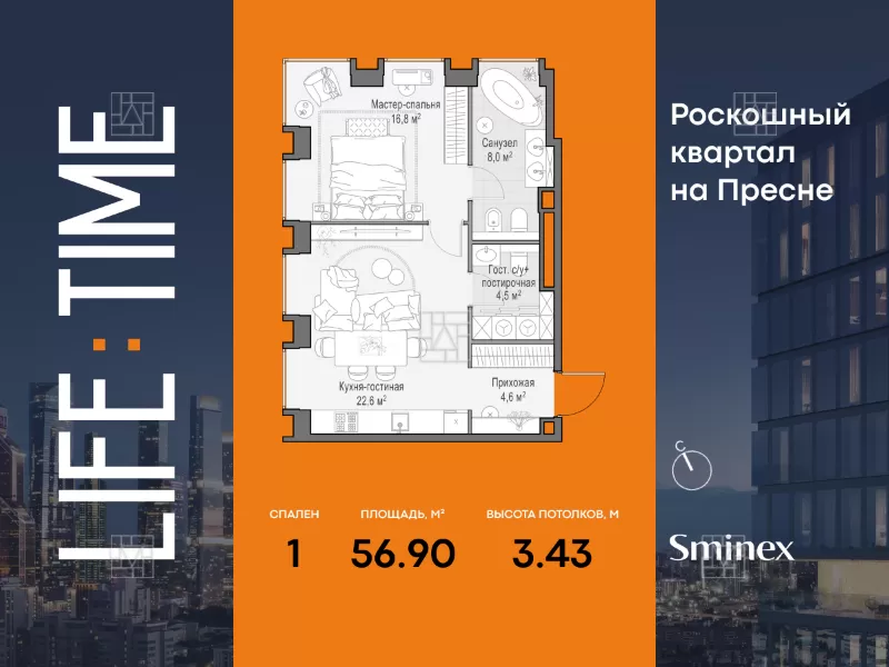 8 элитных квартир в новостройке рядом с "Life Time"
