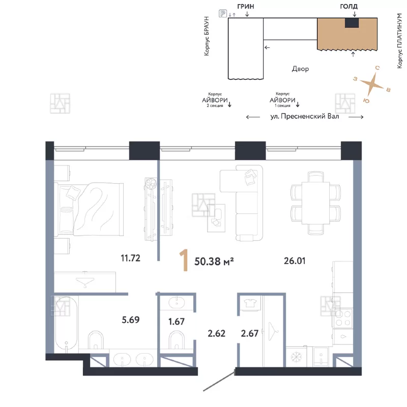 Купить 1-к квартиру в новостройке на улице Пресненский Вал, 27с1