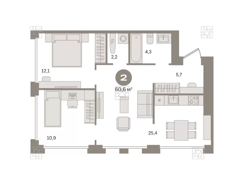 60.6 м2