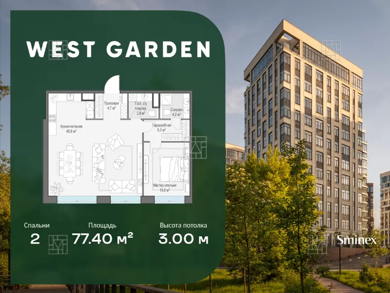 8 элитных квартир в новостройке рядом с "West Garden"