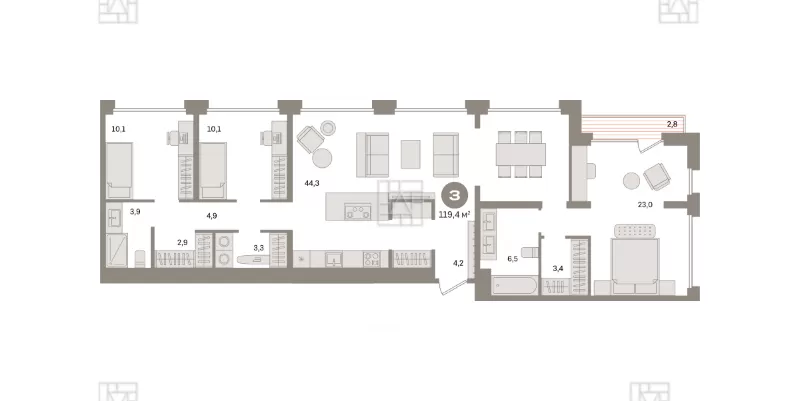 119.4 м2