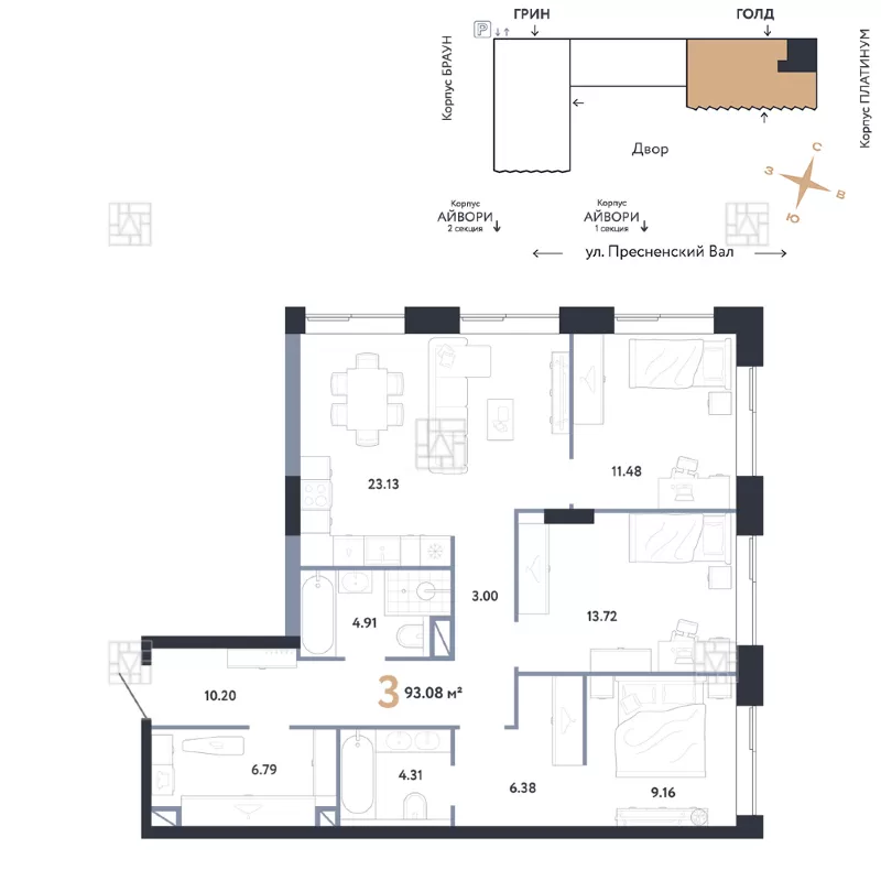 Купить 3-к квартиру в новостройке на улице Пресненский Вал, 27с1