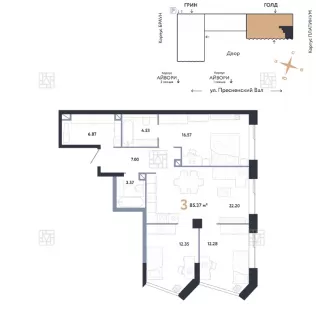 160 элитных квартир на улице Пресненский Вал на продажу
