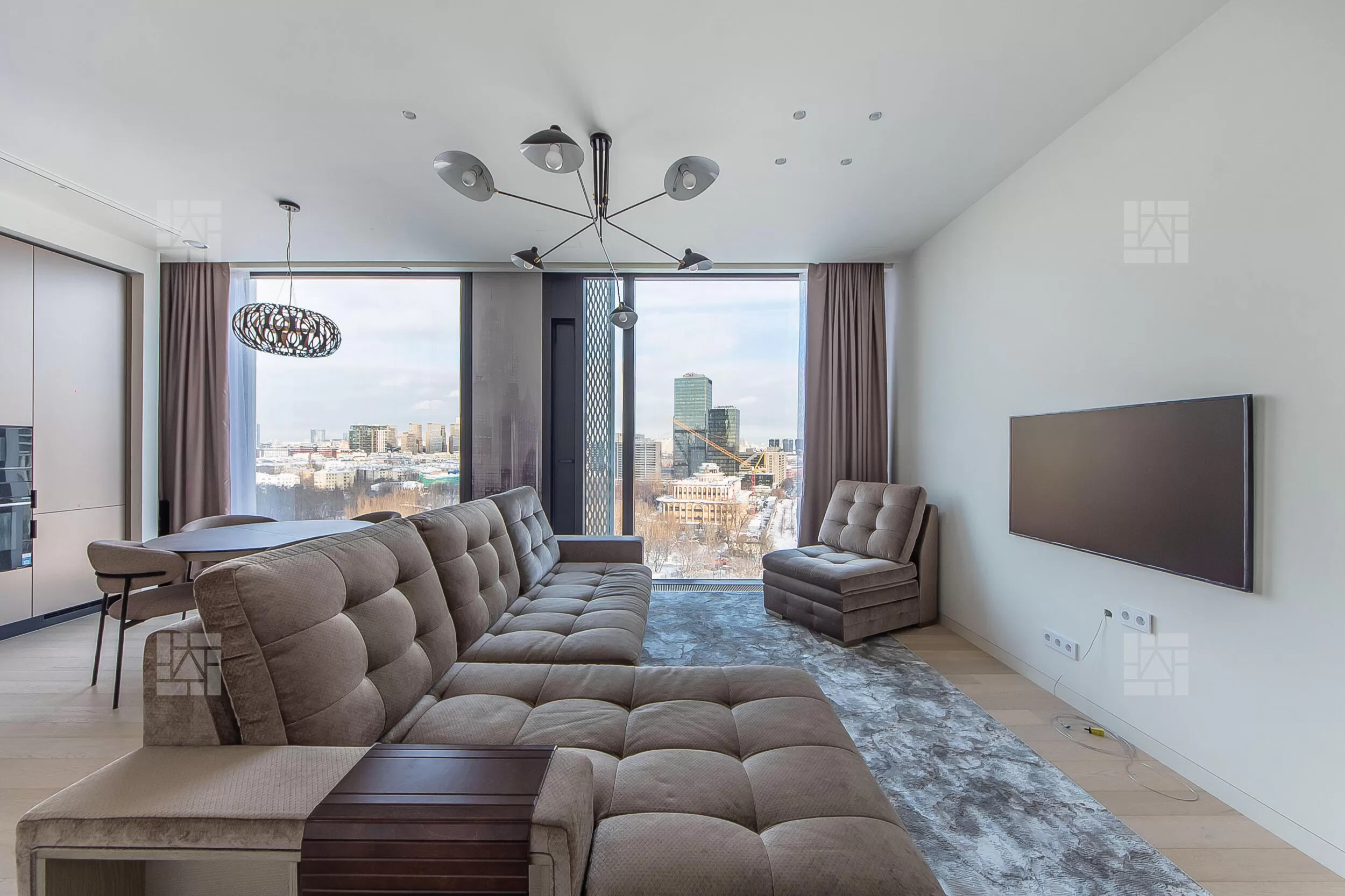 Планировочное решение: кухня-гостиная, 2 мастер-спальни с гардеробными, 2 детские со шкафами, гостевой с/у, терраса, 2 балкона.