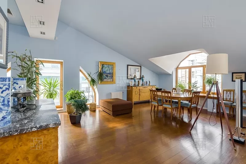 Сотрудничаем с риелторами. Бонус агенту. Великолепный пентхаус в фасадном доме Баскакова на Поварской. Двухуровневая квартира, из окон которой открываются приятные виды на исторический центр города. - На первом этаже с высотой потолков 4 метра расположены: 4 спальни, каждая со своей ванной комнатой, 4 гардеробные, подсобное помещение и 2 балкона. - На втором этаже - кухня с обеденной зоной, гостевой санузел + кладовка, просторная гостиная с кабинетной зоной. В квартире сделан ремонт в современном классическом стиле. Великолепная инсоляция благодаря большому количеству окон. Окна расположены на 3 стороны света. Перепланировка узаконена! Дом построен 1902 году. Была проведена полная реконструкция с заменой перекрытий на железобетонные. Красивая входная группа с сохраненными и восстановленными элементами декора, лепнина, кованные перила. 2 зависимых машиноместа в крытом гараже во дворе дома. Ближайшие станции метро "Арбатская" и "Александровский сад".