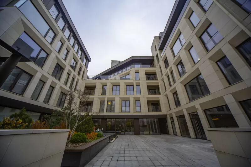Новый объект строительства является комплексом зданий, которые расположены по периметру, чтобы создать внутри уютную приватную территорию для отдыха, установлены фонтаны и оборудована детская площадка. Общая площадь этого объекта, включая парковку, рассчитанную на 420 машин, составляет более пятидесяти тысяч квадратных метров. Жилые резиденции на верхних этажах имеют собственные террасы и оборудованы дымоходами для установки каминов.