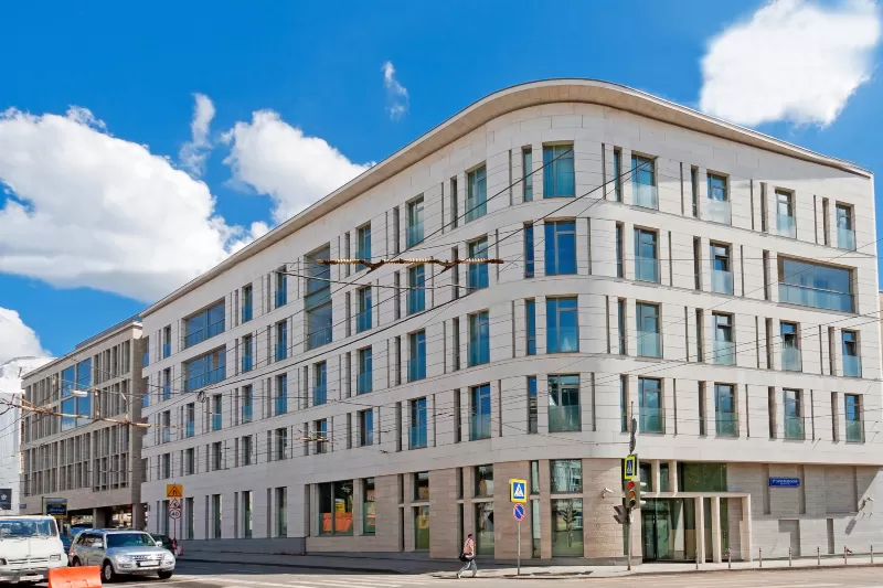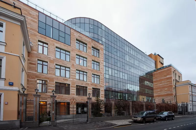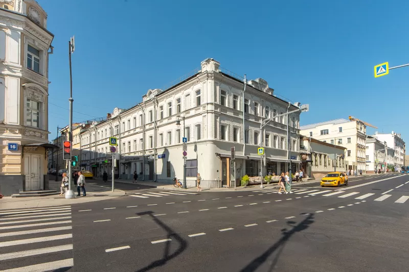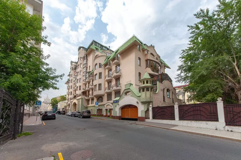 Действительно дорогой, и действительно клубный дом в стиле русского модерна. Шикарная отделка холлов и вестибюлей по индивидуальному проекту с использованием красного и орехового дерева. Лифт также отделан ценными породами дерева; его прообразом, по слухам, послужил президентский лифт Кремля. Камерная атмосфера подчеркивается общей гостиной с камином. Множество витражей, парадные лестницы, французские окна и балконы. Площади квартир от 160 до 350 кв.м. Высота потолков 3.2 м.
